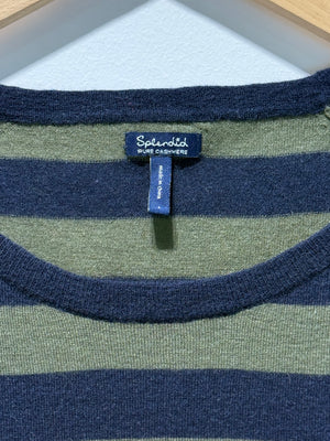 Elevate your wardrobe with this refined 3/4 sleeve cashmere knit. Crafted from luxurious cashmere, this piece offers timeless sophistication and exceptional softness. The three-quarter sleeves provide versatile styling options for any season. In good secondhand condition, it's a sustainable choice for quality knitwear that maintains its elegance and comfort. Perfect for layering or wearing solo.