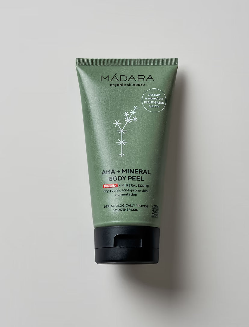 Madara use Earth-conscious packaging solutions, including post-consumer recycled plastics, recycled ocean waste and leftover materials from sugarcane and wood production.