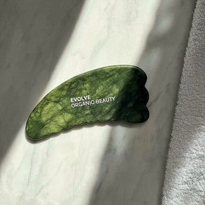 Harness the power of natural jade with Evolve's Body Gua Sha; a sophisticated sculpting tool that transforms your wellness routine. This expertly crafted stone promotes lymphatic drainage, enhances circulation, and helps refine skin texture for a visibly smoother appearance.
