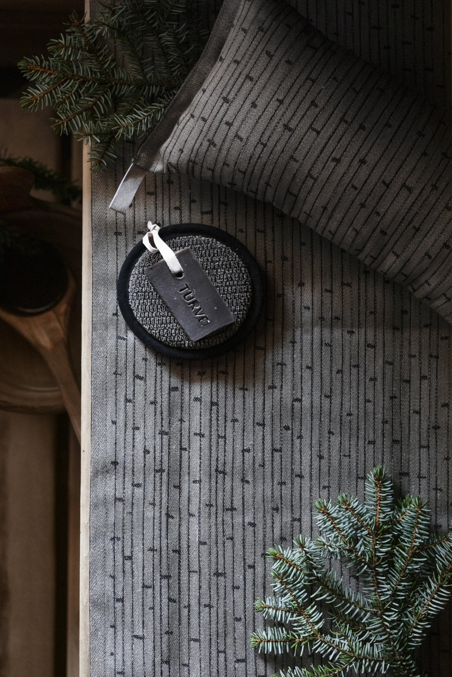 Wash the new textile before use. Delicate laundry wash at 40°C in plenty of water on a slow washing spin. Wash separately. Avoid softener and bleach. Reshape whilst damp. Do not tumble dry.The filling is 100% fire resistant polyester fibre. The colour of natural linen becomes lighter with washing. Shrinkage approx. 5 %. Keep away from the hot stove. Do not sleep in the sauna. Remember to take the textiles out of the sauna always after use, do not dry textiles inside sauna.