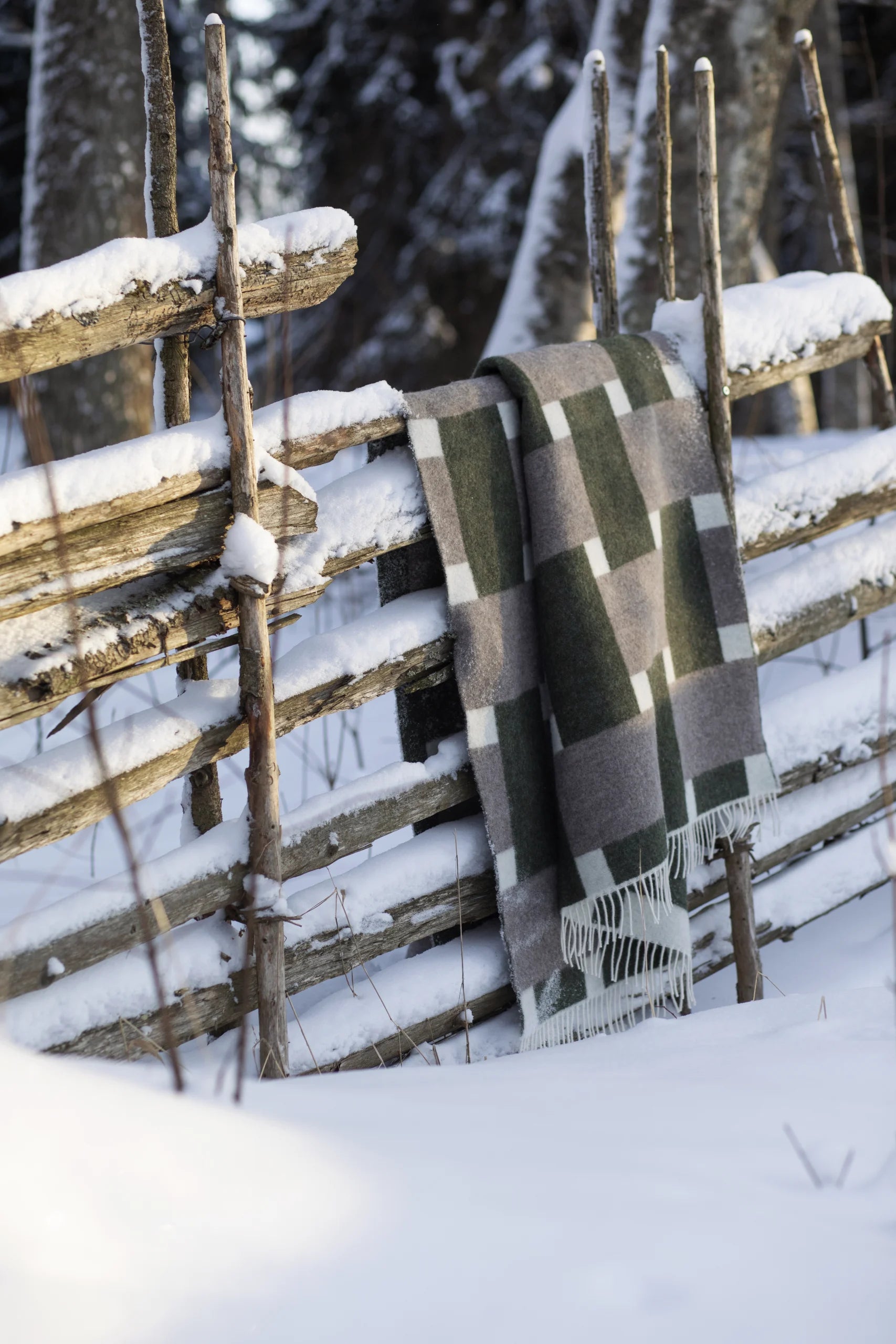 Crafted in Finland from soft wool, this cozy blanket wraps you in comfort every season. Its beautiful blend of beige, olive, and white tones brings Nordic warmth to any room, and makes an inspired gift for someone special.