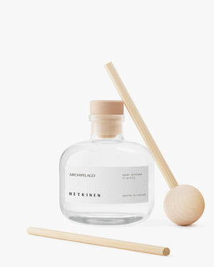 Experience the essence of the Finnish archipelago in your own home. The therapeutic movements of the water, the salty scent of the sea, and the ever-changing views will transport your senses and provide a sense of well-being. Let the aquatic plants, reeds, and rounded rocks whisked by the waves, along with the fragrant forest paths, evoke strong emotions within you. Our Archipelago scent diffuser perfectly captures the elements of water, alders, archipelago pines, and pure clay with its intense and earthy aroma.