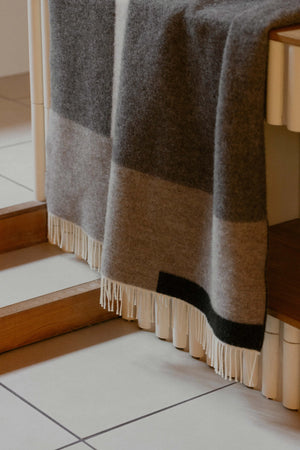 Meet the Suunta Wool Blanket, where geometric precision meets Nordic warmth. Sharp, confident rectangles in brown, white, and beige create a striking visual rhythm that feels both intentional and inviting.