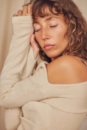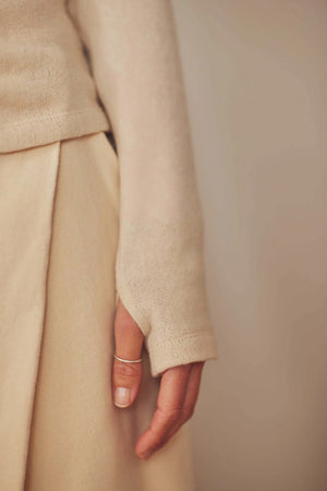 Crafted from a thoughtfully sourced blend of organic wool, organic cotton, and elasticated fibres, this refined knit top exemplifies contemporary sustainable fashion. The gracefully draped neckline and integrated thumb holes deliver both aesthetic sophistication and practical comfort, while the carefully curated palette of oat and melange black ensures seamless integration into any discerning wardrobe. An ideal layering piece for cooler months, it balances timeless elegance with environmental responsibility.